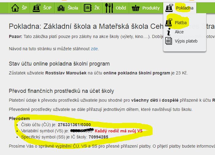 Uvádějte vždy VS i SS,aby se správně a jednoduše dala platba přiřadit. Děkujeme!